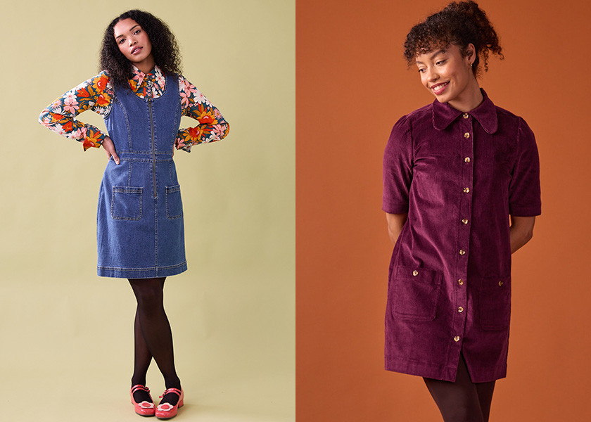 Mindy Mid Wash Denim Pinafore Costume, Anderson Corduroy A-Line Shift Costume