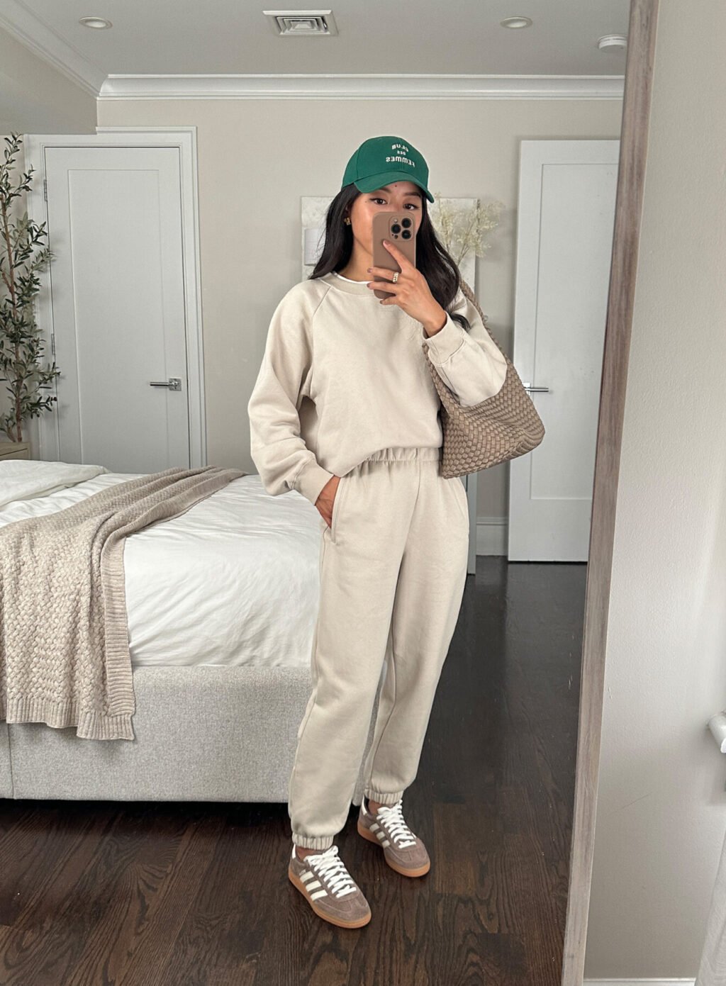 To make a sweats set really feel much less frumpy, don’t overlook particulars just like the sneakers and bag. I’d go for a trendy pair of sneakers over fitness center sneakers and added a pop of shade right here with my cap (a memento from Monoprix, which is just like the Goal of France).