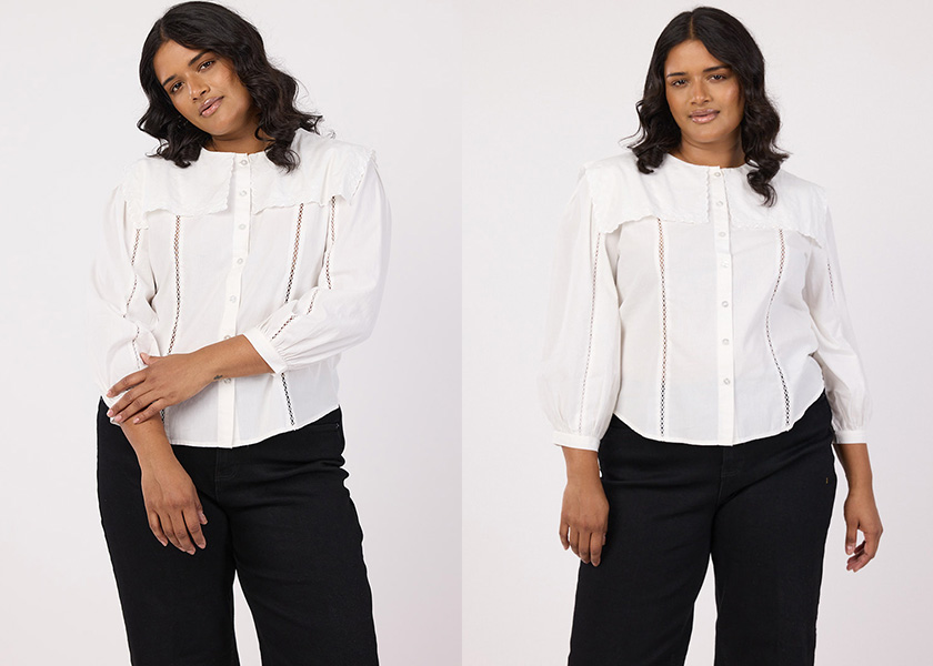 Bram is my go-to on a regular basis shirt – I really like the sort of ‘sailor-ish’ look it has! It really works nicely with denims, styled with dungarees, or worn beneath knitwear with the exaggerated collar protruding. I would suggest going up a couple of sizes for a extra relaxed match!