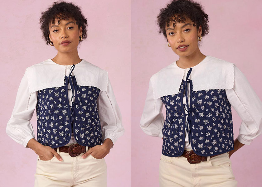 Giselle Ditsy Floral Print Quilted Tie Entrance Gilet