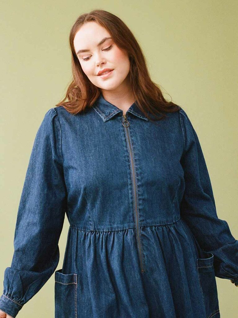 Maribelle Zip-By means of Denim Midi Costume, Cady Floral Print Lengthy Sleeve Smock Costume